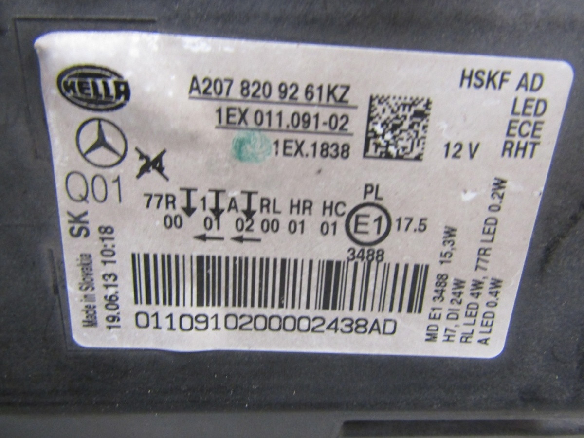 KOPLAMP MERCEDES E KLASSE COUPÉ CABRIO W207 LED FACELIFT 13-17 RH A2078209261 S2134/K3/G15