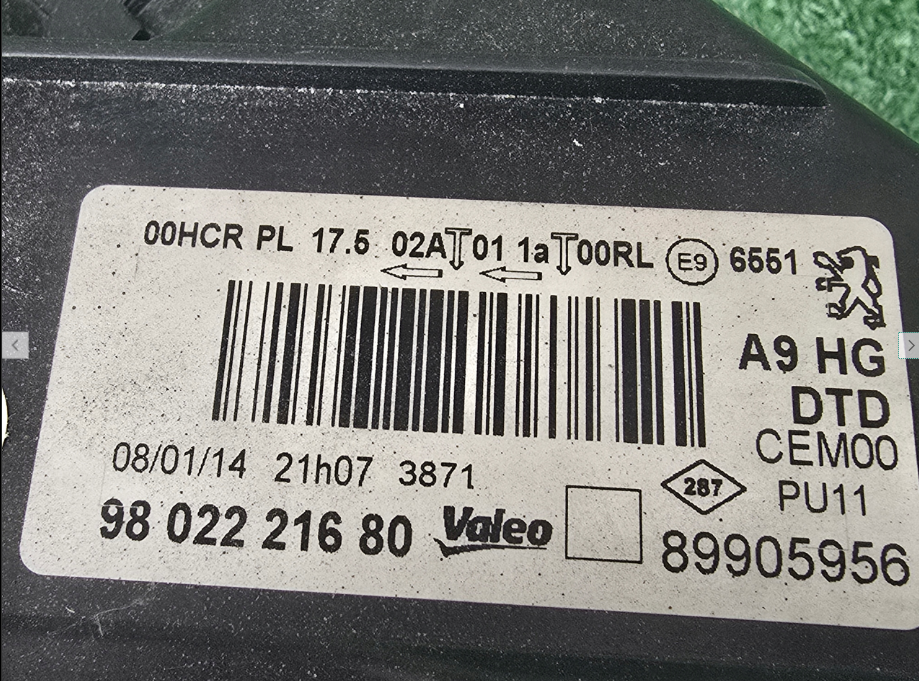 Koplamp PEUGEOT 208 LENS+ LED FRONT LAMP 9802221680
